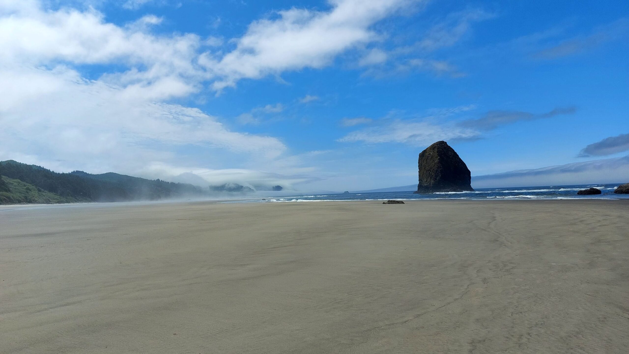 Finally another update!! Sunday 7/27 we broke camp and Maria was driving to Seattle to pick up her sister who will travel with us for 2 weeks. I headed to Long Beach, WA and set up at the Thousand Trails RV Resort. In the early afternoon Maria called to let me know that SuziQ’s Clutch pedal is at the floor and shifting is impossible. It took nearly 2 hours for a tow truck to show up. In the meantime I made reservations for a rental car at the Airport since nothing else was open close by. Eventually Maria and Uli arrived at the Campground at 9:30PM. During our week at Long Beach we visited the Capitol building in Olympia, walked the nicely tended grounds and Fort Clatsop, where Lewis and Clark sheltered from December 1805 to March 1806. Lots of history about the expedition. We also went to Canon Beach which is famous for the huge rocks at the beach. The weather was overcast and with the spray it looked a little surreal.