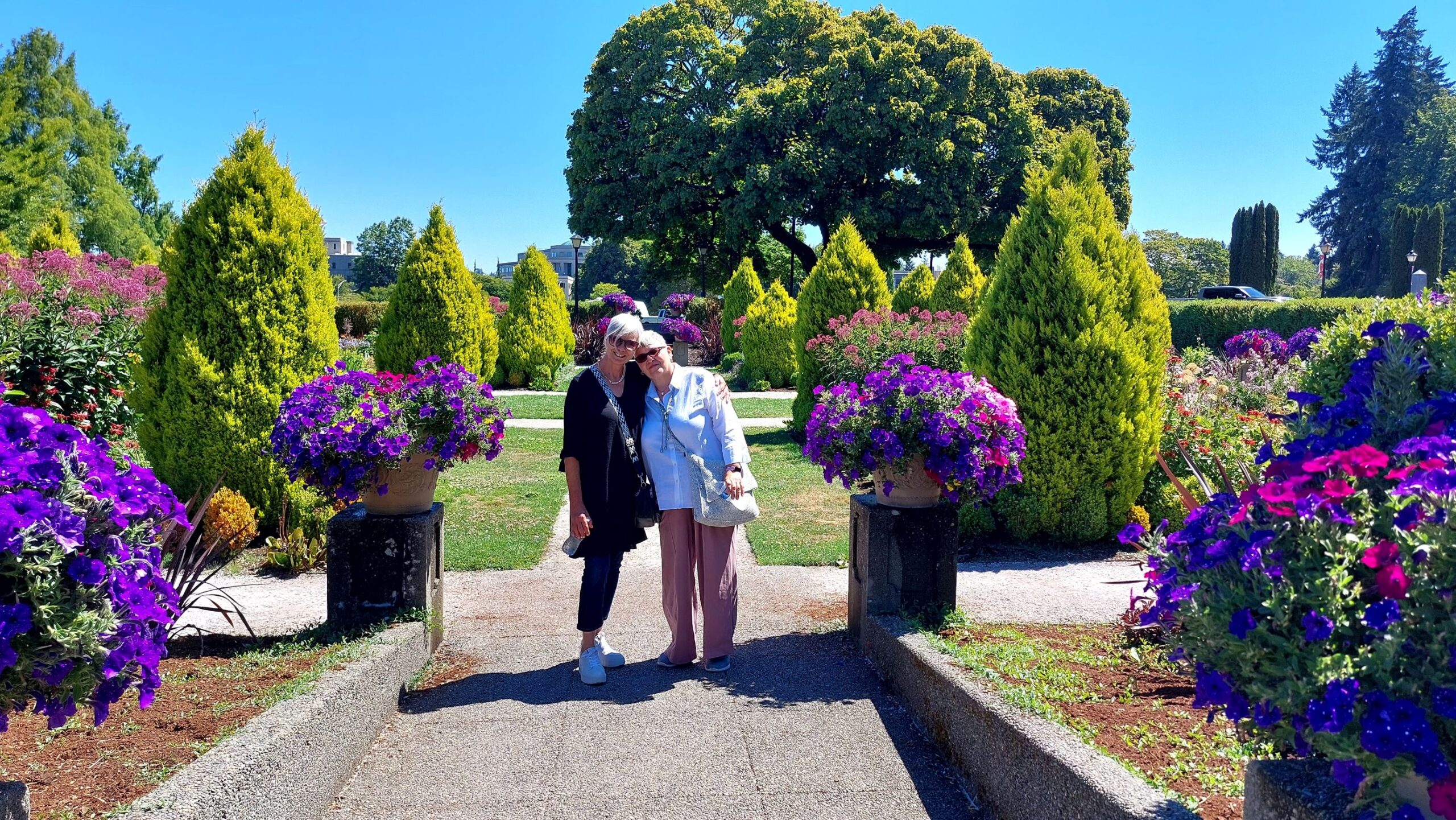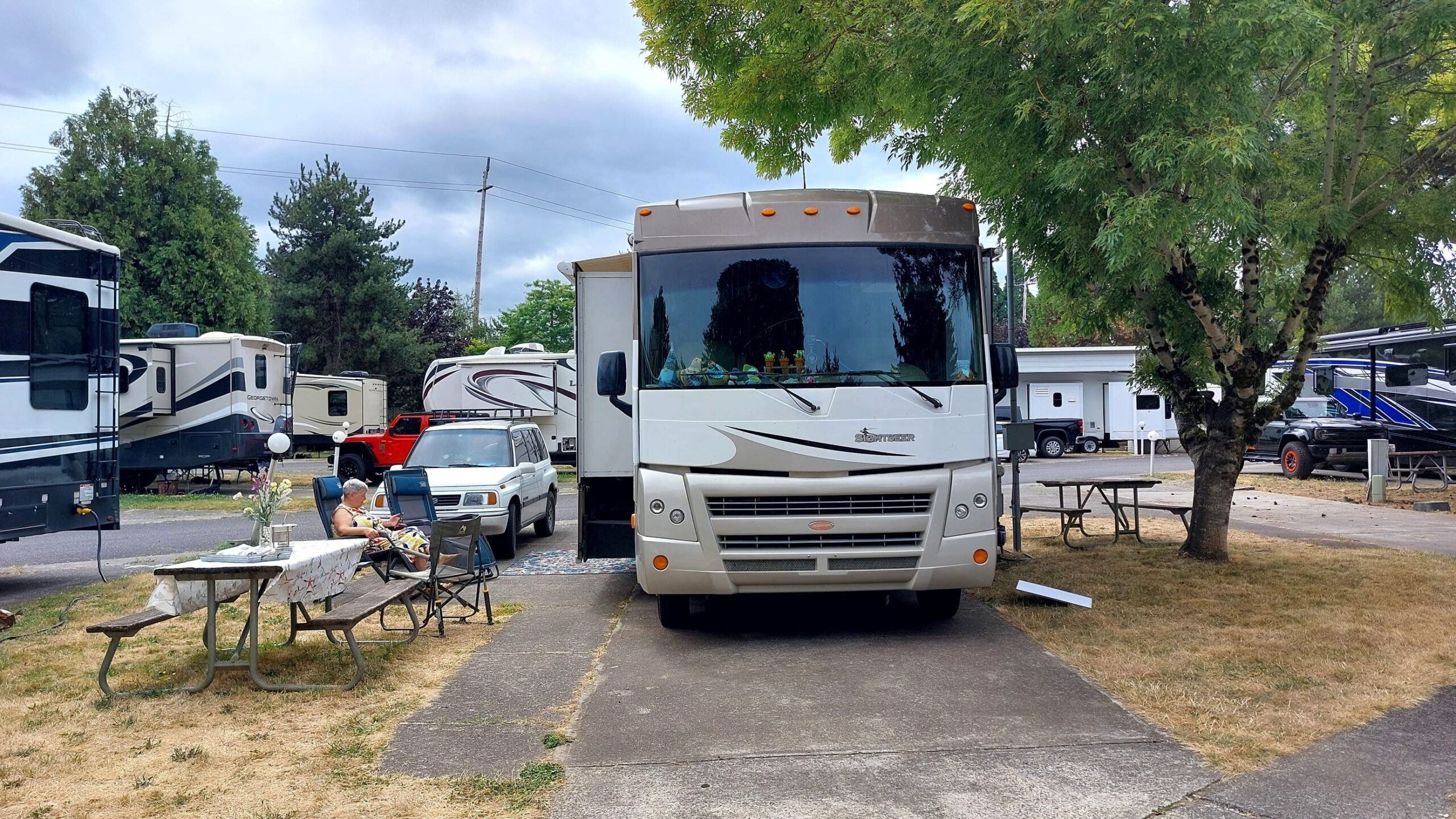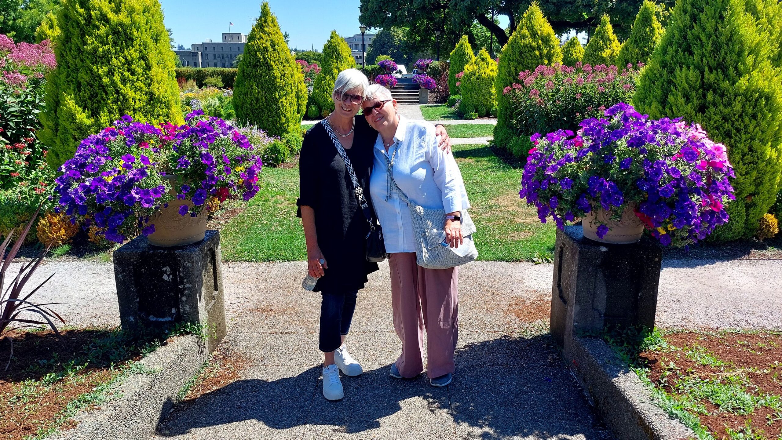Sunday 8/3 we moved to Portland Fairview RV Park in Oregon. The campground is close to town and on the noisy side since its in the path of the close by airport. However, we had a great time. We visited some of the waterfalls in the Columbia River Gorge, the amazing Rose garden in Portland and Ft. Vancouver  across the river in Vancouver, WA. On Saturday we dropped of Uli at Seattle Airport since her vacation came to an end. All three of us enjoyed the time together.